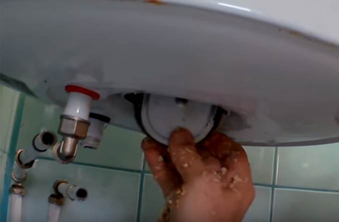 Si la chaudière pend bas et que son nettoyage est difficile, il serait logique de la retirer du mur et de la mettre dans la salle de bain. Il est recommandé de fermer le drain dans la salle de bain avec un bouchon afin que les scories du réservoir n'entrent pas dans l'égout. Sinon, les économies sur l'auto-analyse de l'appareil ne serviront à rien - vous devrez appeler la plomberie.