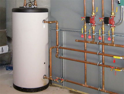 Des trous sont percés dans le réservoir à travers lesquels l'eau froide entrera et l'eau chaude sortira. Sur les tuyaux de dérivation s'étendant à partir de ces trous, des vannes d'arrêt sont installées.
