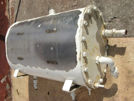 Si le réservoir utilisé comme réservoir est solide, il devra être coupé pour installer la bobine à l'intérieur. À cette fin, la partie supérieure est coupée et un couvercle est fabriqué, qui est ensuite fermé avec des boulons. Les joints entre le couvercle et le réservoir sont soigneusement nivelés et rectifiés. Pour éviter les fuites, utilisez un joint en caoutchouc.