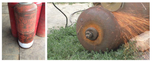- Ensuite, la surface intérieure est nettoyée à l'aide d'une meuleuse d'angle, lavée, séchée et enduite de peinture nitro-primaire pour éviter l'odeur de gaz de l'eau pendant le fonctionnement.