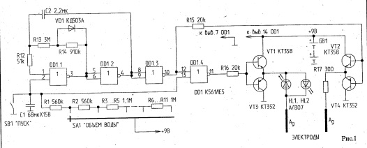 À l'aide d'un circuit électrique, vous pouvez fabriquer vous-même un ioniseur d'eau à la maison. Le diagramme montre le fonctionnement de l'appareil.