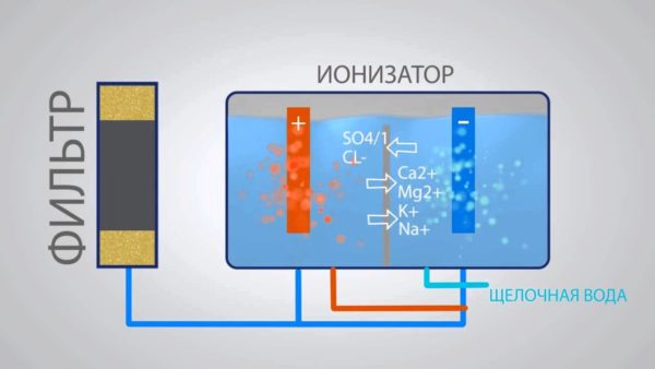 L'hydroioniseur produit des variétés d'eau alcalines et acides. Cela est dû au processus d'électrolyse d'un milieu liquide.