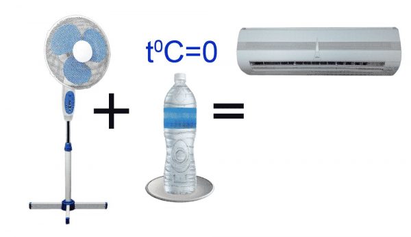 Par ce principe, tous les climatiseurs simples sont créés. Il y a toujours un élément qui porte avec lui le refroidissement et un deuxième objet, il remplit déjà la fonction de répandre la fraîcheur désirée. Le principal avantage de cette méthode est la réutilisation, le prix bon marché, ainsi que l'assemblage instantané et facile. Même un enfant peut faire face à une telle tâche.