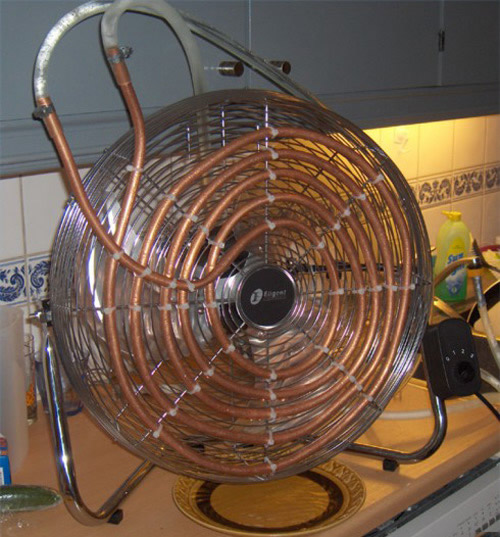 Échangeurs de chaleur, résistances, ampères - mots inconnus? Ils ne sont pas nécessaires, car il s'agit de la version la plus simple d'un excellent climatiseur fait maison. L'essence de son travail est similaire à toutes les méthodes précédentes et consiste en un élément de refroidissement et un distributeur. Mais cette option est plus compacte, le fonctionnement est simple et clair, le sens d'action est meilleur.