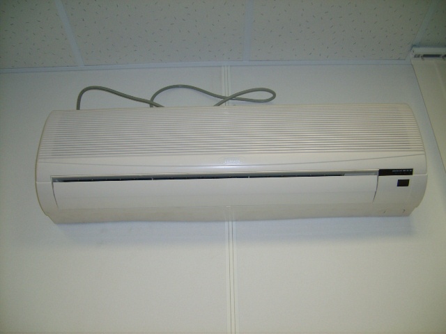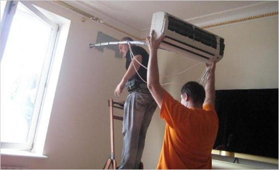 - climatiseurs muraux - l'unité intérieure est placée en haut du mur, l'extérieur - du côté rue du mur, sous la fenêtre;