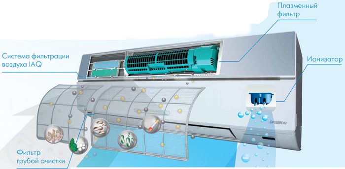 Caractéristiques supplémentaires du climatiseur Le climatiseur peut également fonctionner comme chauffage. Lorsque le réfrigérant s'évapore, il enlève de la chaleur (lorsqu'une personne avec une température élevée est frottée avec de l'alcool, l'alcool s'évapore et la température baisse). Inversement, une fois condensé, le réfrigérant dégage de la chaleur. En mode chauffage, de la condensation de réfrigérant se produit dans l'échangeur de chaleur de l'unité intérieure. Ainsi, à l'aide de l'électricité, la chaleur est transférée d'un milieu à un autre. Cependant, l'appareil transfère 3 fois plus d'énergie qu'il n'en consomme. Le principe de fonctionnement de l'appareil pour la chaleur Notez que le fonctionnement du climatiseur en tant que chauffage est économiquement rentable: en recevant 1 kW d'électricité, l'appareil apporte environ 3 kW de chaleur dans la pièce et ne permet pas à l'air de sécher. Il existe plusieurs règles simples pour utiliser l'appareil: La prophylaxie saisonnière, les diagnostics et l'entretien préventif devraient être obligatoires et continus. La productivité de l'appareil doit correspondre au volume de la pièce. Sur la télécommande de n'importe quel modèle de climatiseur, il y a cinq boutons principaux: Comment configurer l'appareil pour le refroidissement: En réglant la température optimale, le climatiseur ne peut pas être éteint la nuit. La température de refroidissement minimale du fabricant est programmée dans la région de 16 à 18 degrés de chaleur. Plus la température de la pièce est élevée, plus le débit de l'appareil sera chaud. Au démarrage, l'appareil refroidit moins, tout en accélérant - plus. Pour 1 kW dépensé, l'appareil produit jusqu'à 5 kW d'air réfrigéré. Comment configurer l'appareil pour le chauffage: L'appareil ne chauffera pas la pièce en hiver si la température à l'intérieur atteint la température indiquée sur la télécommande. Le climatiseur peut également fonctionner comme chauffage Ce processus simple a ses propres nuances. Le concept de "mise hors tension du climatiseur" comprend trois points: Pour déconnecter le climatiseur de la source d'alimentation, vous avez besoin de: Pour désactiver un appareil qui fonctionne, vous devez: Si vous devez déménager mais que les spécialistes ne veulent pas payer pour le démontage, essayez de le faire vous-même: Démontage de l'appareil Il existe une telle situation lorsque l'appareil doit être ramené aux paramètres d'usine.Il y a un bouton «Reset» sur la télécommande, il y a un petit trou près de cette inscription. En y plaçant un objet fin tel qu'une épingle ou une aiguille, vous pouvez réinitialiser tous les paramètres aux paramètres d'usine. Si la télécommande est actuellement indisponible ou ne dispose pas d'une telle fonction, vous pouvez simplement en retirer les piles pendant un certain temps. Une fois les piles mises en place et l'appareil allumé, tous les paramètres seront réinitialisés aux paramètres d'usine. La fonction «Reset» est l'une des fonctions supplémentaires de l'appareil, qui permet à l'appareil de reprendre le processus précédent après une pause dans le fonctionnement de l'alimentation. Tous les climatiseurs modernes ont un mode de déshumidification dans leur arsenal. Ce mode peut être utilisé dans des conditions d'humidité excessive de la pièce. Cela n'affecte pas la température de l'appartement dans un sens ou dans l'autre. Le circuit de refroidissement aide l'échangeur de chaleur de l'unité intérieure à atteindre la température la plus basse. Dans ce cas, le ventilateur tourne au minimum. Ainsi, la plus grande efficacité du processus de condensation se produit. L'appareil peut facilement éliminer de la zone qui lui est confiée en une heure jusqu'à 2 litres d'humidité, travaillant à la fois de manière autonome en mode drainage et en association avec le mode refroidissement. Ce mode a une efficacité maximale dans les pièces humides, ne donnant pas aux champignons et aux bactéries la moindre chance de reproduction et nuisant à la santé humaine. Mode de drainage dans le climatiseur Lorsque le mode «ventilation» est activé, l'air ne chauffe pas, ne se refroidit pas, il circule simplement uniformément dans la pièce, en étant simultanément nettoyé, avec des filtres. Le fonctionnement du compresseur et du ventilateur extérieur n'est pas nécessaire, seul le ventilateur de l'unité intérieure fonctionne. Grâce à ce mode, l'air dans toute la pièce atteint une uniformité complète. Cependant, l'air frais ne pénètre pas dans la pièce à moins que vous n'ouvriez pour la ventilation, par exemple, une fenêtre. Récemment, des systèmes de ventilation d'alimentation et d'évacuation sont apparus sur le marché des appareils électroménagers, qui peuvent fournir de l'air frais de l'extérieur et évacuer l'air d'échappement. Le générateur d'anions est situé sous le ventilateur de l'unité intérieure. Sa fonction est de générer des ions négatifs (anions) en raison de fortes décharges entre les électrodes du générateur à travers lesquelles l'air circule. Le nombre moyen d'anions produits varie de 20 000 pour 1 cm3 d'air. La composition de cet air est proche de celle de la forêt. En 2-3 minutes, l'ionisation résiste à l'odeur de la fumée de cigarette et en 2 heures, elle sauve la pièce des agents pathogènes. Les avantages de l'ionisation sont évidents: Conclusion: la fonction d'ionisation est une chose extrêmement utile. Ioniseur de climatiseur Dans les entrailles de l'unité intérieure, les flux d'air passent par plusieurs degrés de purification. Plus l'appareil est cher, plus il contient de filtres. Les filtres dans le climatiseur sont les suivants: Filtre à plasma - Comment ça marche Même si la poussière, les spores, les bactéries et les virus contenus dans l'air n'ont pas d'effets néfastes graves sur la santé humaine
