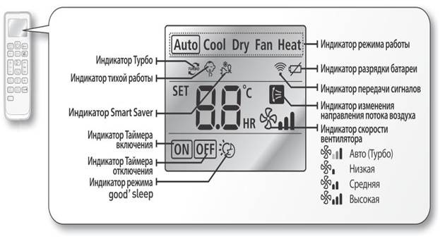 - Le bouton «mode» change l'ordre des fonctions avec une séquence spécifique. Il est nécessaire de trouver le paramètre avec la désignation sur l'affichage du soleil, comme indiqué sur la figure, ou le mot "chaleur" qui signifie le mode air chaud. Après avoir sélectionné cette fonction, le moteur et le ventilateur interne peuvent s'arrêter. L'équipement s'arrête un certain temps pour reconfigurer et optimiser la tâche qui lui est assignée.