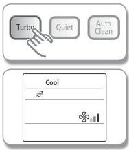 - La fonction TURBO signifie un soufflage amélioré. En l'allumant, vous pouvez forcer le ventilateur à fournir un débit d'air accru à grande vitesse. Ainsi, la pièce est artificiellement ventilée sans ouvrir les fenêtres. Et le temps sera dépensé beaucoup moins.