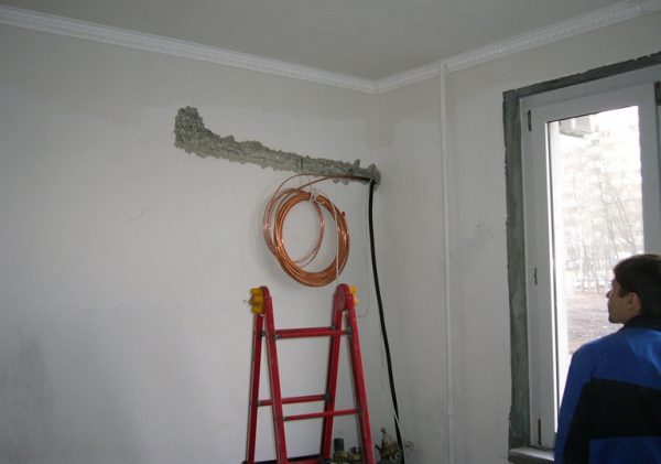 - Il est nécessaire de marquer l'emplacement du câblage dans le mur. Cela peut être fait à l'aide d'un appareil spécial.