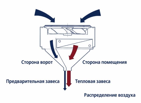 La tâche d'un tel dispositif de protection est de couper l'air extérieur en utilisant l'air lui-même. À savoir - la création d'un flux d'air isolant qui couvre toute l'ouverture ouverte. Un tel rideau retient non seulement la chaleur à l'intérieur, mais empêche également la pénétration de la poussière, des odeurs étrangères et même des insectes de l'extérieur.