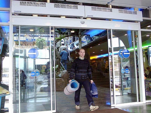 La solution optimale serait d'établir une barrière dans l'ouverture, qui permet aux personnes de passer à travers, mais constitue un obstacle à la circulation externe de l'air. Un tel dispositif est appelé rideau thermique, car il crée un flux plat d'air chaud dans une ouverture ouverte et ne permet pas la sortie de masses chaudes vers l'extérieur et l'entrée d'air froid à l'intérieur.