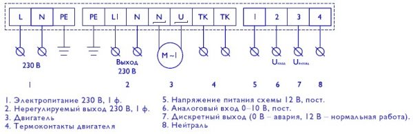 - Contrôleur de vitesse de fréquence. Ces modèles peuvent être utilisés exclusivement dans la plage de 0 à 480 volts. Convient aux moteurs triphasés d'une puissance n'excédant pas 75 000 watts.