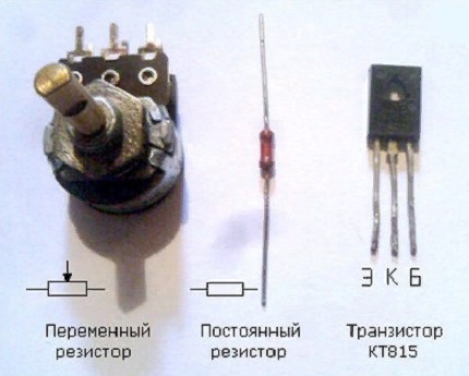 La base T est soudée au contact central du PR, le collecteur à la sortie latérale. Une résistance avec une résistance de 1000 Ohms doit être connectée au bord opposé du PR. La deuxième sortie P est soudée à l'émetteur T.