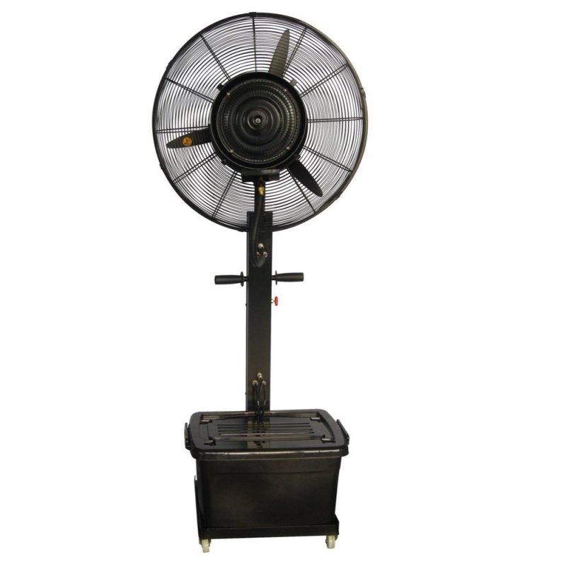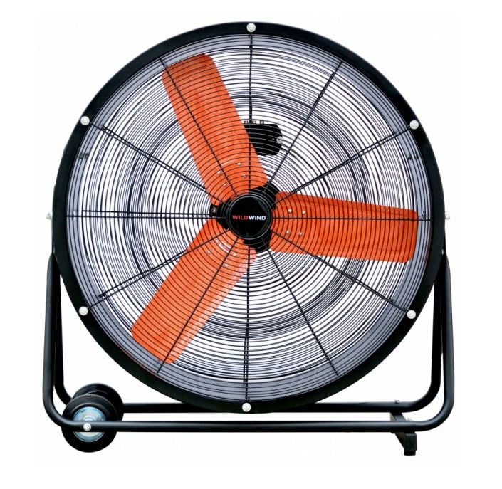 Le ventilateur au sol pèse 21 kg et sa puissance est de 240 watts. L'unité est équipée de roues pour se déplacer.