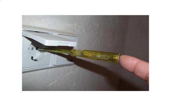 - Vous pouvez également vérifier la sortie à l'aide d'un tournevis indicateur. Insérez un tournevis dans le premier puis dans le deuxième trou de la douille. Où se trouve la phase, la LED de signal du tournevis s'allume. Au contact de zéro, le tournevis ne brûlera pas.