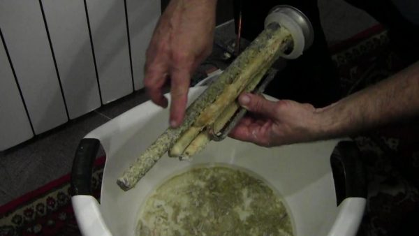 Pour éliminer le tartre du chauffe-eau, il doit être retiré du chauffe-eau (décrit ci-dessus) et placé dans un bain en plastique avec un liquide contenant des éléments chimiques actifs. Par exemple, vous pouvez utiliser l'outil ménager "Mole", il fonctionne très efficacement lorsque vous avez besoin de vous débarrasser du tartre ou de la rouille.