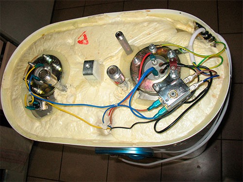 Si des fuites sont détectées sur le corps, coupez l'alimentation de la chaudière, déconnectez les pinces à bornes d'un ou deux éléments chauffants (dans certains modèles de chauffe-eau). Pour détecter dans lequel des deux Tenes il y a une fuite, mesurez la résistance entre l'élément chauffant et son corps. Lorsque la résistance tend vers l'infini, l'élément chauffant n'est pas endommagé. Dans un Ten défectueux, la résistance aura une valeur finie (environ 450 kOhm).