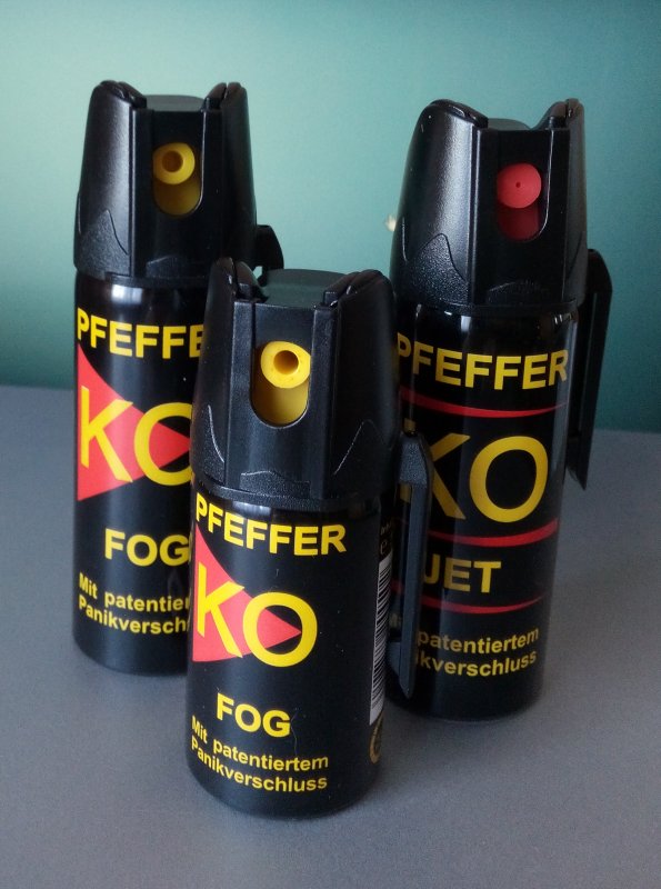Ao contrário do último tipo de substância venenosa, um spray sufocante ou de gás lacrimogêneo para autodefesa não é capaz de ajudar a combater cães raivosos ou animais selvagens inadequados. Portanto, se você decidir comprar este produto para se proteger de cães agressivos, pergunte com antecedência se a substância ativa atua nos receptores de animais. Geralmente essas informações são indicadas na embalagem.
