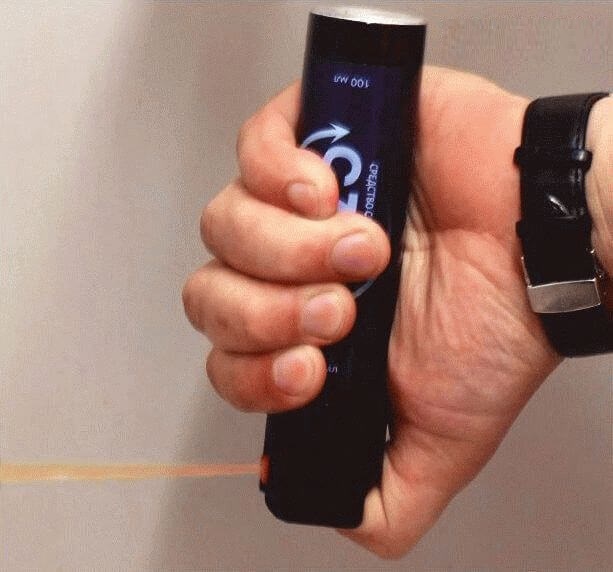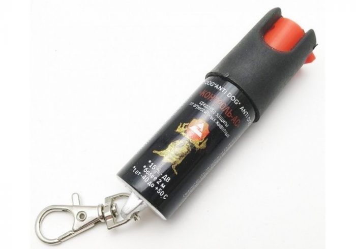 Um meio em miniatura de autodefesa. Irritante fraco e pequeno volume não permitem o uso da lata de spray por um longo tempo. Além disso, a substância não é testada em seres humanos, é projetada e projetada para repelir animais agressivos. A principal vantagem é o tamanho em miniatura - o produto é distribuído na forma de um chaveiro. Substâncias ativas: gás, extratos químicos e naturais.