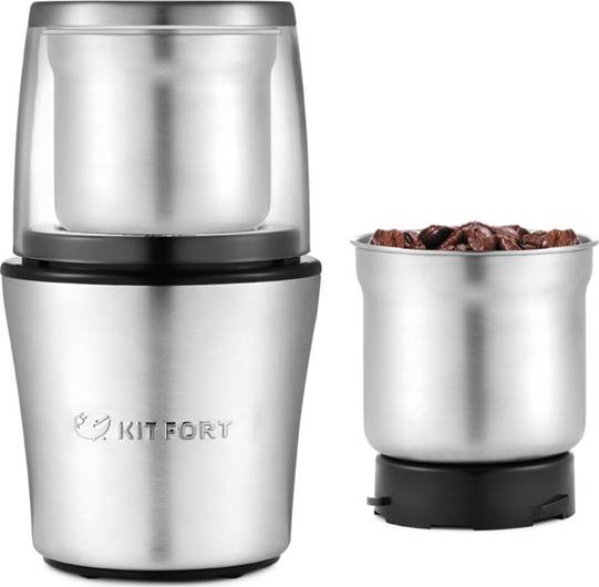 L'appareil universel qui convient pour moudre des grains de café ou diverses épices. Un moteur de 200 W fonctionne très bien en mode standard, mais si vous le surexposez un peu, il y a un risque de panne. De plus, cette dégradation se manifestera instantanément sous forme de fumée et d'une odeur de brûlé.Tout cela indiquera une charge excessive sur le moteur. Inclus avec l'appareil est une cuillère à mesurer et une brosse pratique pour nettoyer les composants internes.
