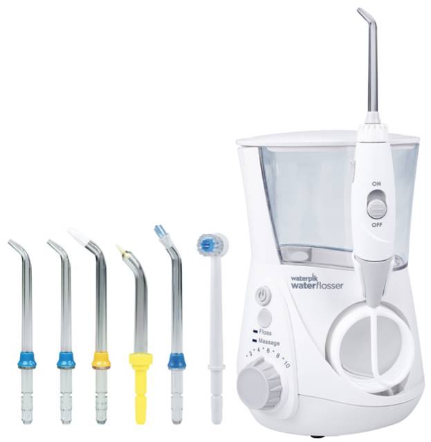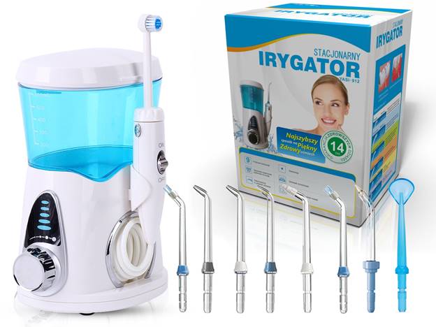 Irrigateur stationnaire, capable de renforcer les dents dans les plus brefs délais. Même les gencives qui saignent passeront après les premières semaines d'utilisation de l'appareil. L'irrigateur élimine efficacement les débris alimentaires même dans les endroits difficiles d'accès. Bon pour nettoyer les systèmes de supports. Il peut être utilisé même par des personnes ayant des implants et une variété de prothèses.