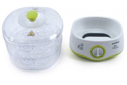 Un appareil miniature d'une capacité de 800 W est équipé d'une minuterie rotative pendant 1 heure, d'un réservoir d'eau, de deux bols en plastique transparent dont le volume est de 4 l et d'un collecteur de jus. L'appareil est présenté en deux couleurs: le modèle 160 dans une teinte gris-blanc et le 161 en blanc-vert.