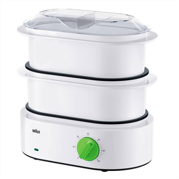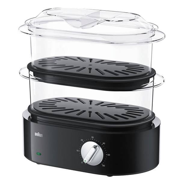 L'appareil compact de 650 W dispose de 2 bols transparents, dont le volume total est d'environ 5,5 litres. Les bols transparents sont en plastique résistant à la chaleur, permettant à l'hôtesse de contrôler le processus.