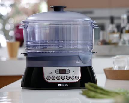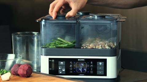 L'élégante chaudière double comprend 3 bols, vous permettant de cuisiner plusieurs plats à la fois. L'appareil est équipé d'un système d'arrêt automatique, d'une protection fiable et du programme intellectuel IQ STEAM. Grâce à cela, le modèle détermine indépendamment le temps de cuisson. De plus, la chaudière à vapeur est équipée de 7 programmes. Ils peuvent être ajustés manuellement. L'appareil dispose également d'un écran multifonction, facilitant le processus de création de plats. Une fois prêt, la chaleur des aliments est stockée pendant 30 à 40 minutes supplémentaires.