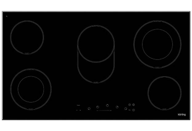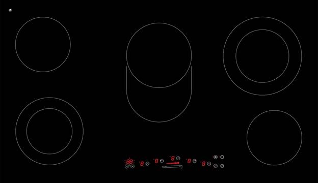 Grande plaque de cuisson composée de 5 brûleurs. L'un d'eux a une forme ovale et convient pour chauffer de grands récipients de forme non standard. Les dimensions du modèle sont assez impressionnantes, donc avant d'acheter, il est nécessaire de déterminer son emplacement dans la cuisine. Le panneau de commande tactile est situé à l'avant, ce qui vous permet de surveiller en permanence le fonctionnement de chaque zone de chauffage.