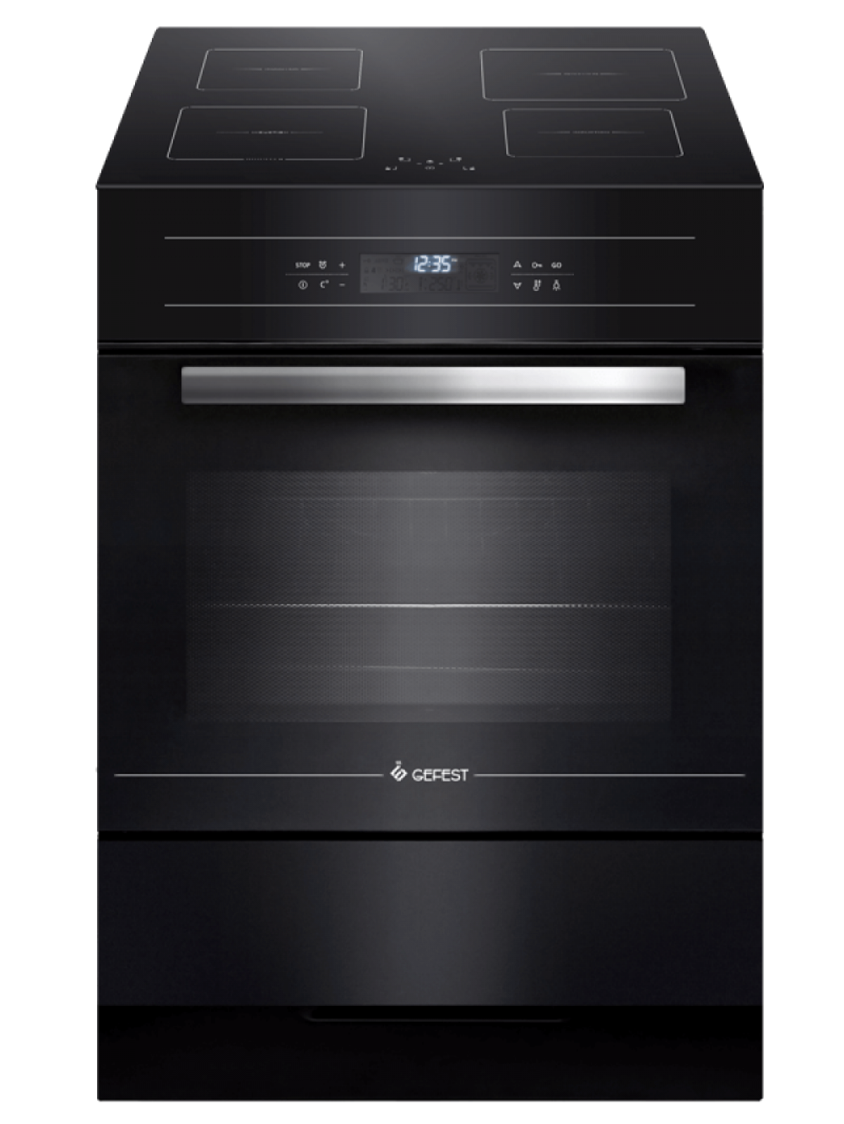 L'une des meilleures cuisinières avec plaques à induction. Fournit un interrupteur mécanique séparé pour chaque brûleur, vous permettant de sélectionner le mode souhaité. L'affichage aidera à surveiller l'état du poêle et à régler la minuterie au bon moment. Le modèle est équipé d'un grand four rétro-éclairé et de son propre ventilateur de refroidissement.