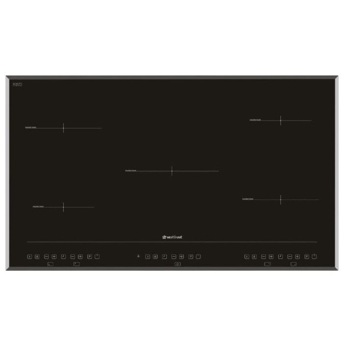 Table de cuisson à cinq brûleurs, divisée en deux zones. En fait, cela ne fonctionnera pas immédiatement, car il existe d'importantes limitations de puissance. À puissance moyenne, vous pouvez utiliser trois emplacements en même temps, mais pas plus. Cependant, tous les avantages des panneaux à induction sont présents ici. Le modèle réchauffe rapidement les aliments, est facile à nettoyer et vous permet de ne pas vous soucier de la sécurité des enfants.