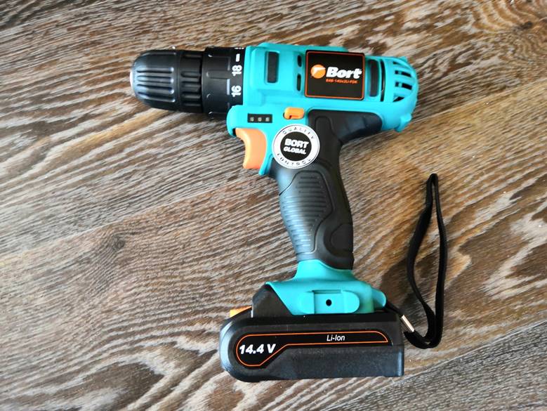 La tension de la batterie lithium-ion sera de 10,8 V habituelle, il faudra environ 40 minutes pour charger complètement. Les avantages seront une position confortable de la poignée lors du perçage, la présence d'une batterie supplémentaire, un emballage fiable, un rétro-éclairage intégré compétent, ce qui facilite l'utilisation de l'outil dans un mauvais éclairage. Le coût est de 6000 p.