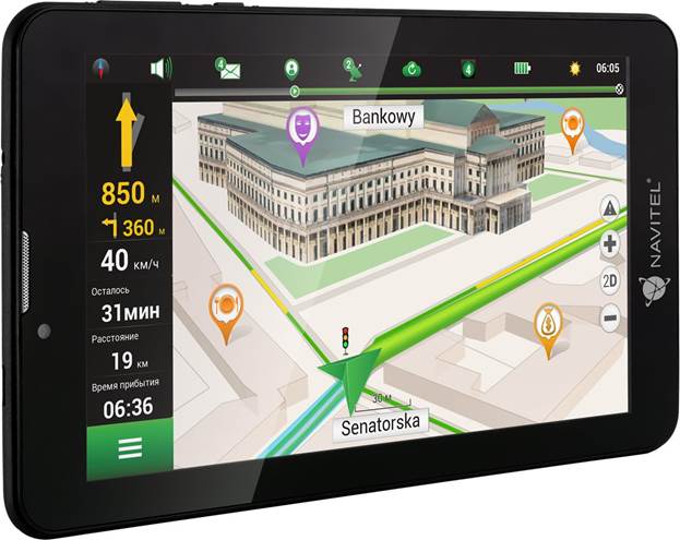 En gros, il s'agit d'une tablette équipée d'un navigateur avec un récepteur GPS intégré. Pour déterminer l'emplacement, l'appareil se concentre sur un signal GLONASS et GPS conjoint. Visuellement similaire à un smartphone, seulement quelques-uns dans l'ensemble. La capacité de la batterie est ici de 2700 mAh. Si vous chargez complètement le processeur, la charge est suffisante pour une durée de vie de la batterie de 2 heures. Il fonctionne sur la base d'Android 5.1. Si vous le souhaitez, vous pouvez installer le programme Navitel avec toutes les cartes nécessaires. Toutes les applications sont facilement localisées sur Google Play. Spécifications matérielles: RAM - 1 Go, processeur - 1 GHz, écran de 7 pouces avec une résolution de 1024 par 600 pixels.