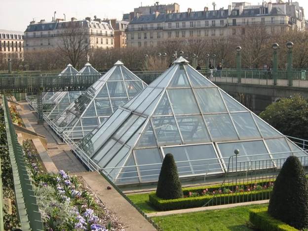 - Forme de pyramide. Le design est populaire parmi les jardiniers amateurs. Difficultés d'installation, de maintenance.