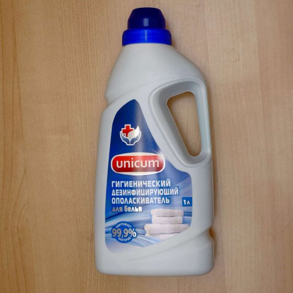 Il s'agit d'un remède universel, dont la particularité est qu'il détruit toutes les bactéries pathogènes, mais traite soigneusement les tissus. Et lorsqu'il est ajouté au début du lavage, il améliore l'action de la poudre à laver, aidant à faire face aux taches et aux odeurs désagréables. Les autres avantages de ce climatiseur incluent: