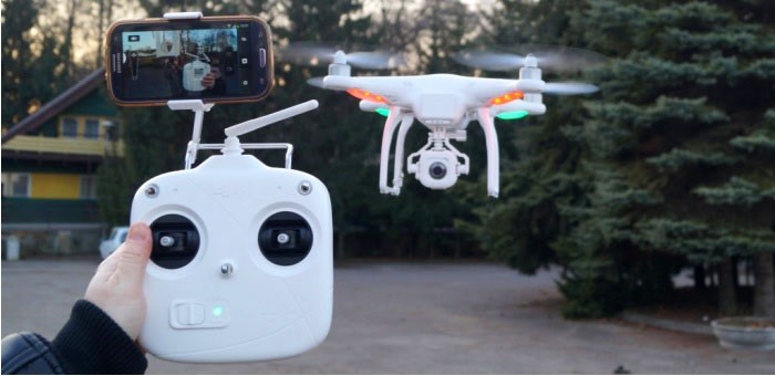 L'option de contrôle la plus simple est le plus souvent utilisée - le quadricoptère est équipé d'un panneau de commande qui abrite un petit écran (l'image de la caméra du drone y est diffusée) et de joysticks pour contrôler les rotors. Pour les modèles populaires, le contrôle peut être implémenté via une application propriétaire pour smartphone utilisant le protocole Bluetooth / WiFi (dans ce cas, il peut y avoir des problèmes de portée en raison du petit rayon d'action de ces protocoles).