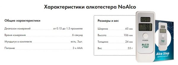 L'appareil est bon en ce qu'il ne capte pas de trop petites doses de vapeur d'alcool, il ne retire donc pas l'attention inutile des inspecteurs. L'appareil de mesure a un compteur de mesure intégré, qui permet un étalonnage en temps opportun après chaque 1000 mesures.