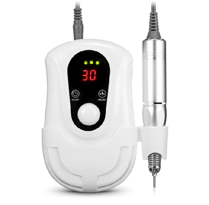 - Mode mondiale. La machine vous permet de faire non seulement des manucures ou des pédicures, mais également des extensions d'ongles ou des limes. La vitesse de rotation des fraises est de 35 000 tr / min. Il y a une fonction inverse. Coût - 5300 roubles.