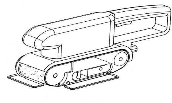 Comme buse, un papier de verre fermé (sans fin) est utilisé. Il est mis en mouvement par un mécanisme équipé de galets. La bande est montée sur eux.