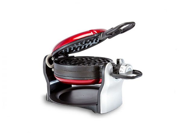- Mécanisme pivotant. Une option qui permet à la pâte de se répartir uniformément à l'intérieur du gaufrier. En conséquence, la cuisson est de la même épaisseur, uniformément cuite. Il suffit de tourner le gaufrier à 180 degrés autour de son axe.