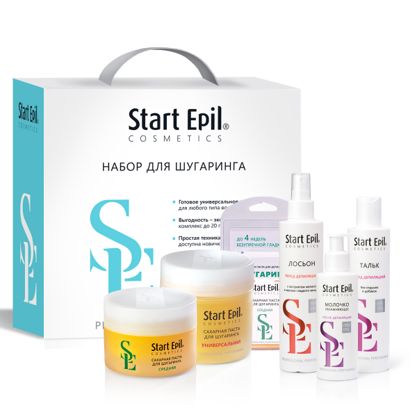 | Pâtes Shugaring pour peaux sensibles | Start Epil (réglé pour shugaring n ° 1) | 1600 | Le maximum indolore atteint grâce à la préparation de la peau à l'aide d'une lotion et le traitement final avec un lait apaisant aux extraits de soie et de lotus. |