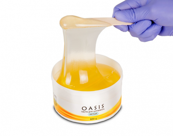 - Doux. Il s'agit d'un très visqueux, facilement réparti sur la masse cutanée qui ressemble au miel. Appliquez-le avec une spatule, après avoir chauffé à 30-45 ° C, sur les zones du corps couvertes de poils fins et pelucheux: mains, ventre, visage, bikini.