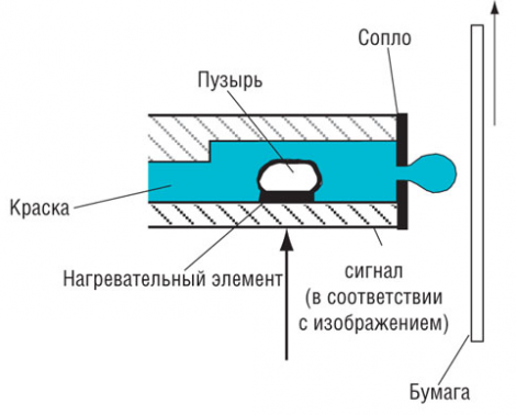 Le principe de l'impression à jet d'encre découle du nom même de la technologie. La peinture est soufflée sur le papier depuis la buse de la tête avec des microgouttes.