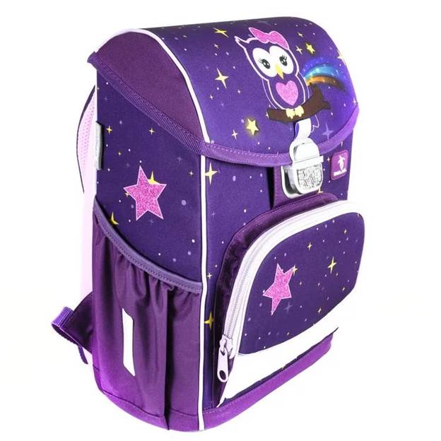 Le cadre rigide, la forme stable d'une sacoche convient aux enfants jusqu'à 10 ans. Des couleurs sombres avec des motifs lumineux plairont à la fille.