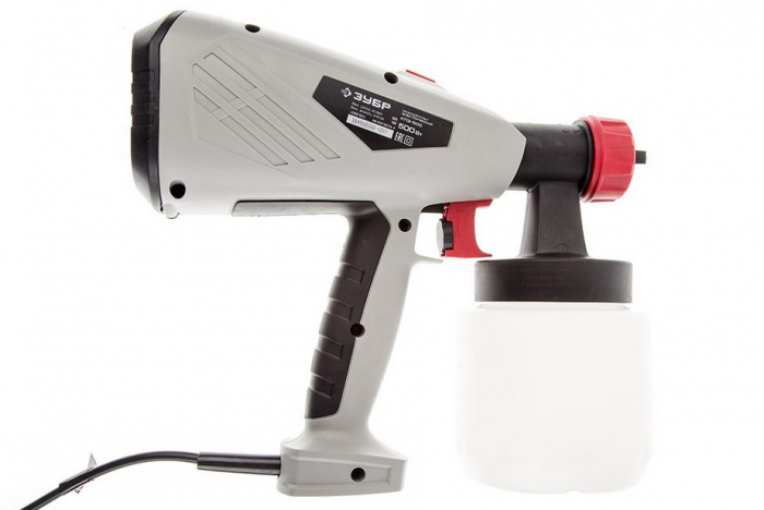 - Puissance - un outil électrique avec une valeur de cette caractéristique jusqu'à 500 W convient à des fins domestiques, de petites quantités de travail. Des modèles plus puissants sont utilisés pour la peinture professionnelle des murs des bâtiments, des meubles, des fragments individuels d'une carrosserie de voiture.
