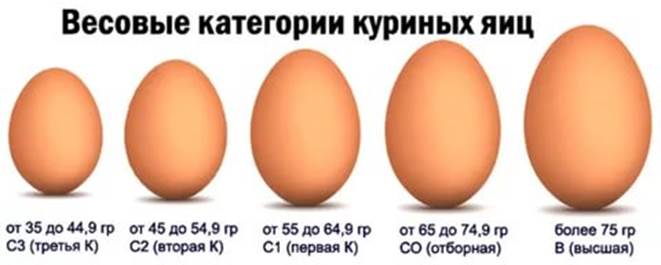 Pour déterminer quelle catégorie d'oeufs, ils sont répartis dans les catégories suivantes: