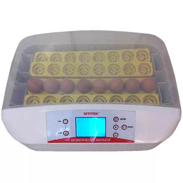 Capacité - 98 pcs. Puissance - 75W. L'incubateur est équipé d'un retournement automatique, tous les œufs y sont placés. De plus, 2 grilles sont incluses.Le mode d'emploi fourni par le fabricant avec le produit doit être strictement respecté.