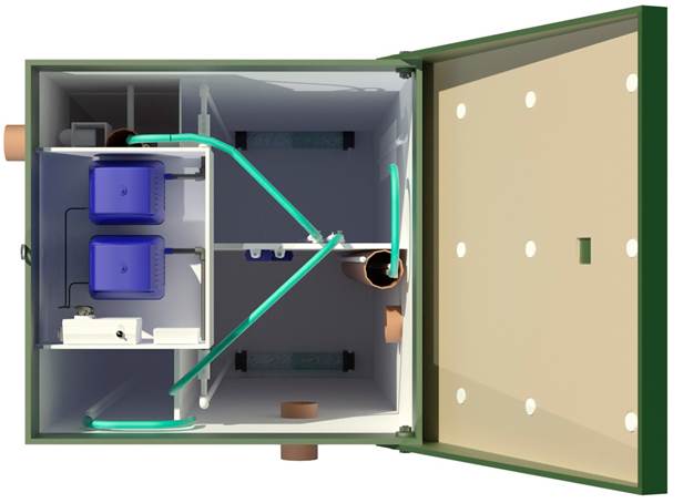 Une station d'épuration relativement peu coûteuse pour une maison de campagne ou un chalet avec une vie à l'année. Le modèle se réfère à non volatile. La productivité est de 700 litres de déchets par jour. Le pompage est effectué chaque année 1 fois. Il ne nécessite pas de connexion au secteur, il est possible d'utiliser une batterie ou des générateurs comme source d'alimentation alternative. Il peut pleinement satisfaire les besoins d'une famille de 4 à 6 résidents.