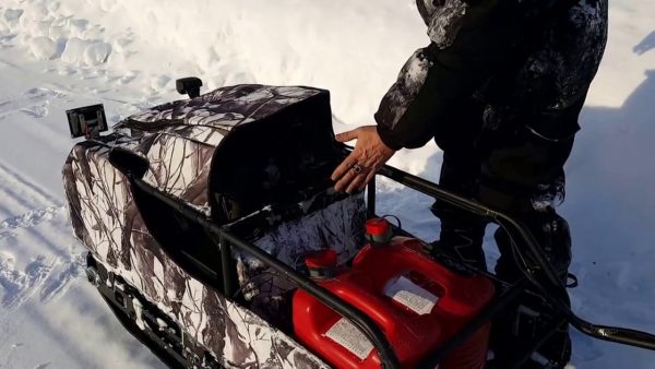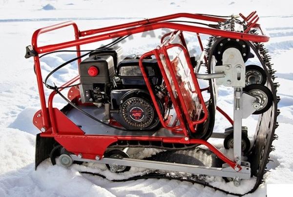 La chenille est assez large - 55 cm, la masse de transport atteint 80 kilogrammes. Le moteur chinois consomme de l'essence 92A. La transmission à vitesse variable est fiable, elle peut accélérer jusqu'à 24 kilomètres à l'heure. Un assemblage facile et un bon moteur améliorent le débit et la traction. Vous pouvez transporter jusqu'à 200 kilogrammes de fret. Il existe un module de ski qui peut être facilement remplacé par des roues.