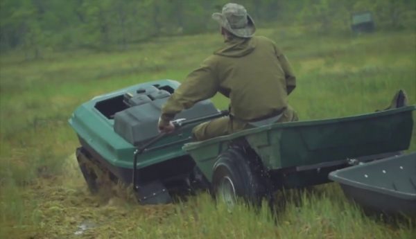 Le ZiD MBG-1 Fishkar est un véhicule à deux pistes toutes saisons, qui est livré avec un cadre de motoneige raccourci. Les chenilles ont une largeur de 39 centimètres. Il offre une bonne capacité de cross-country sur n'importe quelle route. La suspension unifiée permet l'installation de chariots à roulettes en hiver. Vous pouvez contrôler le transport depuis la remorque. Puissance moteur - 5 ch La capacité de charge est de 85 kilogrammes.